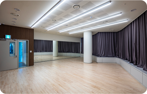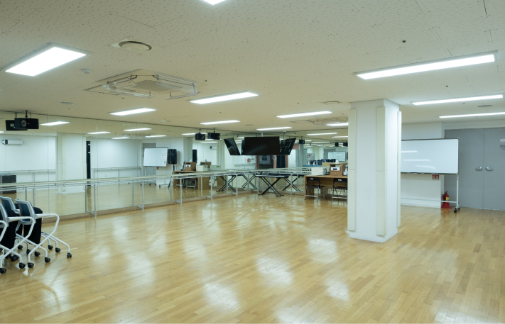 전면 거울, 음향, 영상 장비가 구비되어 있는 소규모 연습실